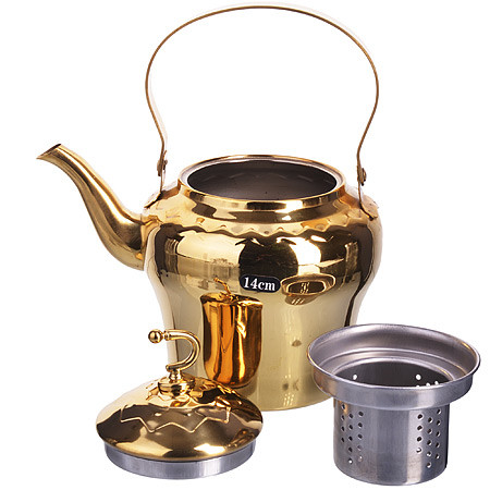 Mayer & Boch Чайник заварочный с фильтромВ данный момент этот товар отсутствует в продаже. Возможно, у нас найдется аналогичный или похожий товар здесь. Заварочный чайник с металлическим фильтром/ситечком. Изготовлен из высококачественной нержавеющей стали с глянцевой полировкой и золотым покрытием. Изделия из нержавеющей стали не окисляются и не впитывают запахи, благодаря чему вы всегда получите натуральный, насыщенный вкус и аромат напитков. Сетчатый металлический фильтр гарантирует прозрачность и чистоту напитка от чайных листьев, при этом сохранив букет и насыщенность чая. Гладкая и ровная поверхность существенно облегчает уход за посудой. Эстетичный, золотого цвета, выполненный в классическом стиле, чайник будет прекрасно смотреться на любой кухне. |