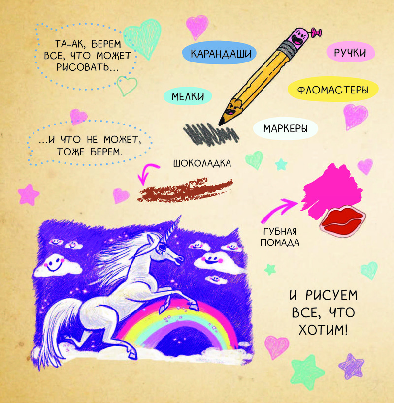 отличный скетчбук, есть три страницы с подсказками как рисовать картинки, на каждой странице мини рисунки