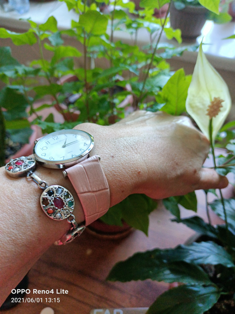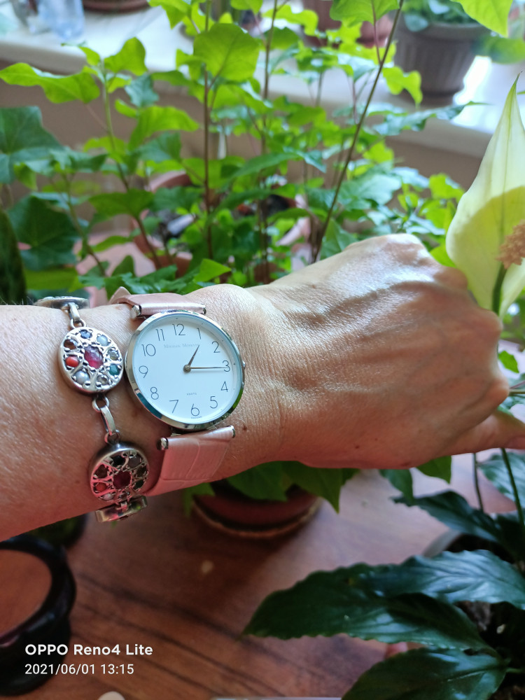 Часики очень красивые, очень элегантные. Смотрятся изумительно!!! Часовой механизм почти бесшумный!!! Ремешок приятного телесного цвета, кожаный!!! Спасибо большое, за возможность приобретать красивые вещи по приемлемой цене!!!