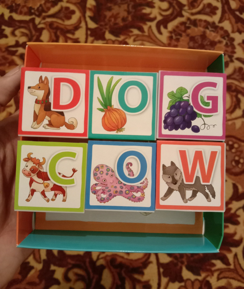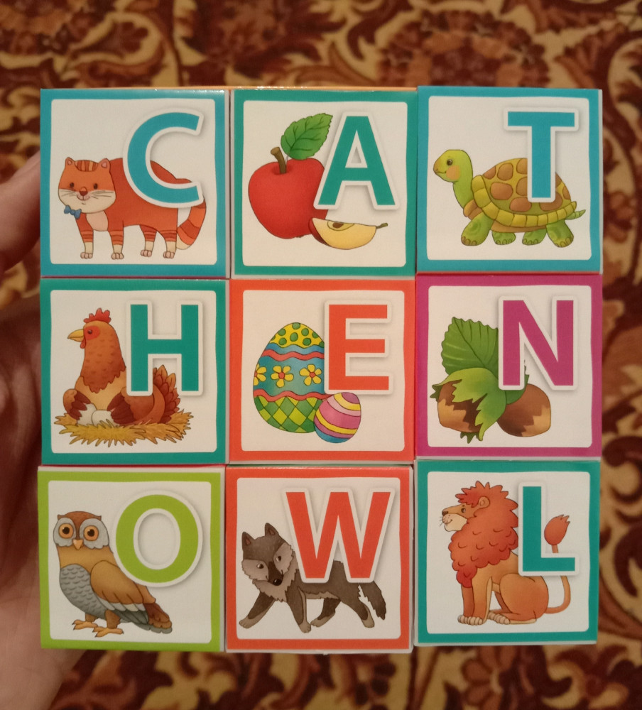 Кубики супер 🙂👍 Построили английские слова: сова, корова, собака, кошка, свинья и курица.