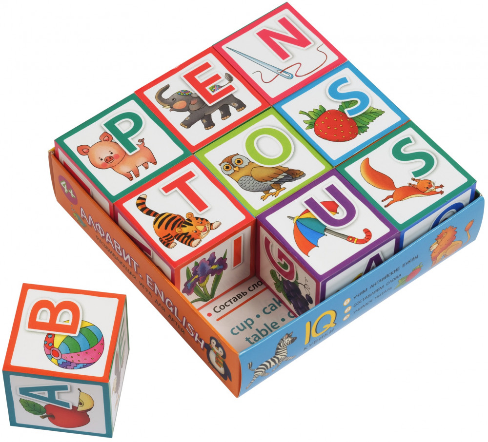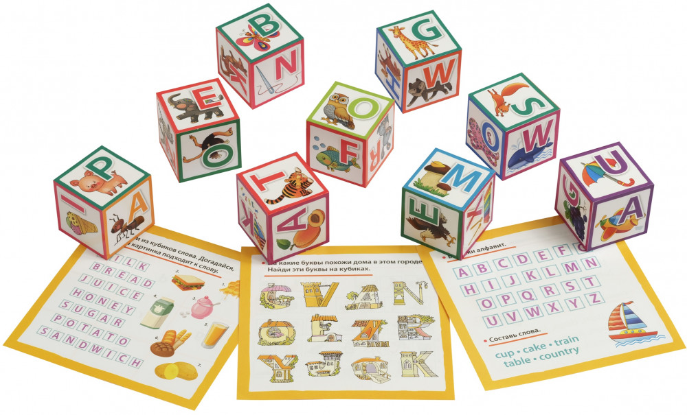 Отличные кубики! Размер каждого кубика классический (именно такой размер кубиков используют при психологических исследованиях). Выполнены кубики очень качественное, картинки наклеены прочно. На каждой букве-кубике английского алфавита имеется соответствующий рисунок. Картинки красивые, интересные. Жаль только, что не в коробочке, а в поддоне. (Но это гораздо лучше, чем были бы просто в пакете). Кубики как психолог рекомендую!