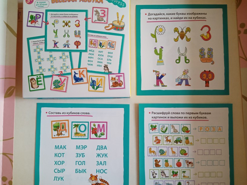 Кубики красивые яркие, но бумажные имейте ввиду. С кубиками идут карточки с играми. Маленькие, ребёнку нравится с ними играть, но мы их грызём …