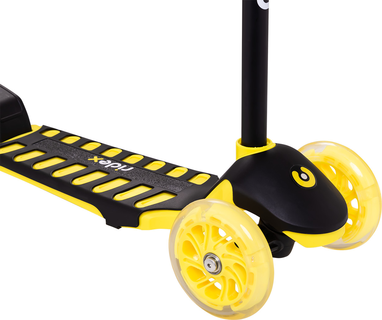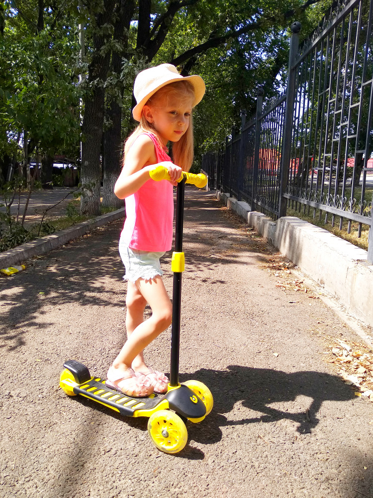 Детский самокат с необычным дизайном двухцветной деки, на которой расположена полоса шкурки «AntiSlip» — теперь Ваш ребенок будет более устойчив даже на поворотах. Еще одна особенность данной модели — телескопическая ручка, регулируемая по высоте на любом уровне. Самокат компактен и удобен как при транспортировке, так и в хранении — ручка складывается вдоль деки.