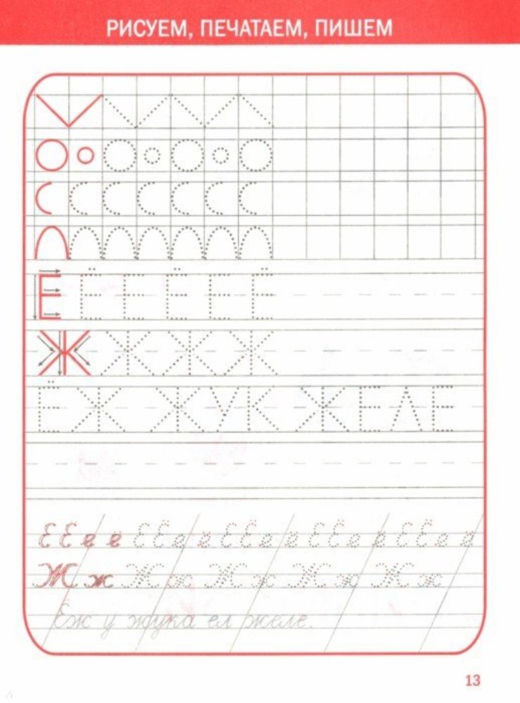 Вы можете даже несколько раз работать с пособием: например, сначала вы просто изучаете буквы, малыш раскрашивает картинки, запоминает звучание и написание звуков, выполняет элементарные графические упражнения.
