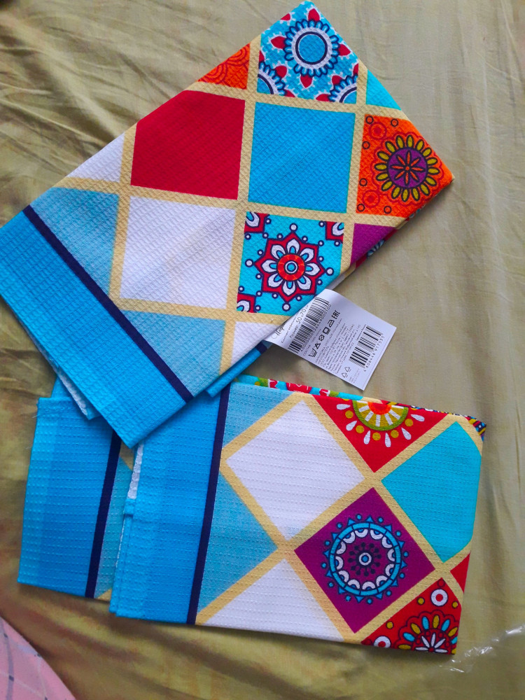 ШИ-КАР-НЫЕ!!! Яркие, красочные, большие полотенца! Моя кухня очень рада)) Еще не пользовалась, но на глаз вижу, что качество как раньше у добротных советских вафельных полотенец. Как поведут себя в стирке еще загадка, надеюсь краски не поблекнут. Дополню отзыв позже. Но однозначно закажу еще пару комплектов, цена не высокая. Зря боялась что они будут низкого качества, как скатерть из этой же серии. Флип.кз спасибо за молниеносную доставку, ночью заказала, утром уже был в Астане мой заказ.