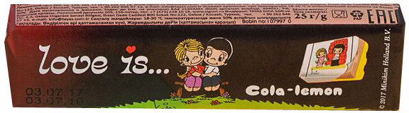Love is Конфета жевательная Love is... «Кола-лимон»В данный момент этот товар отсутствует в продаже. Возможно, у нас найдется аналогичный или похожий товар здесь. Жевательная конфета «Кола-Лимон» от Love Is удивит любимых не только вкусом. Приятным сюрпризом будут вкладыши новой серии с героями комикса Love Is. В каждой конфете их пять! |