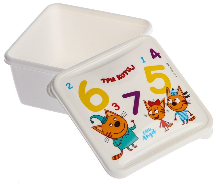 Очень легкий контейнер небольшого размера. Хорошо закрывается. Пластик без запаха, картинка яркая. Товар пришел хорошо упакован и без дефектов.