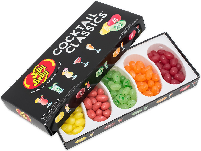 Ассорти Jelly Belly со вкусом Cocktail Classics — модная и веселая выдумка специалистов международного гиганта, выпускающего уникальные жевательные конфеты. Пять видов самых популярных алкогольных коктейлей, чаще всего заказываемых и выпиваемых в лучших барах США. Теперь несовершеннолетние, могут почувствовать себя полноценно на большом семейном веселье. Конечно обидно, когда взрослые распивают горячительные напитки и очень хочется приобщиться к этой культуре. Не спешите, алкоголь разрушает мозг, печень, почки, а также сердце. Хотите почувствовать себя взрослыми? Пожалуйста, к вашим услугам восхитительные, безвредные жевательные бобы, с реальными и правдоподобными вкусами алкогольных коктейлей. С такими сладостями, вы полностью окунетесь в атмосферу праздника, при этом совсем не разгневаете своих строгих родителей.