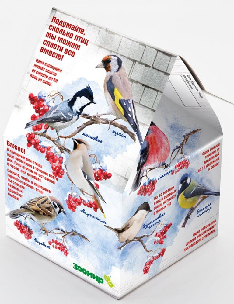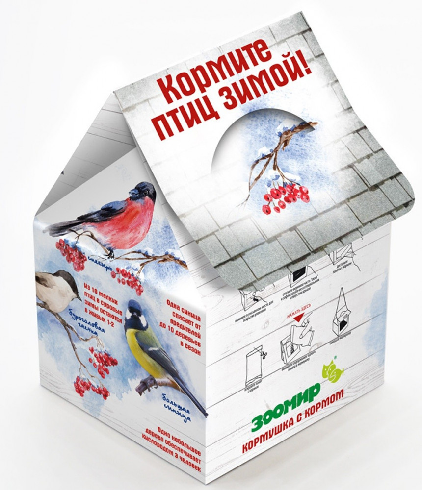 Зоомир Кормушка с кормом для уличных птицприлетают птицы есть корм компактная интересно детям В данный момент этот товар отсутствует в продаже. Возможно, у нас найдется аналогичный или похожий товар здесь. Это очень удобная разработка от Зоомира, можно сказать, 3 в 1: корм, кормушка и веревочка-крепление! Вам нужно только открыть окошко, вынуть пакетики с кормом, высыпать корм в кормушку и повесить ее на дерево! В кормушке 2 пакета с кормом по 150 грамм. Подумайте, сколько птиц мы можем спасти все вместе! |
