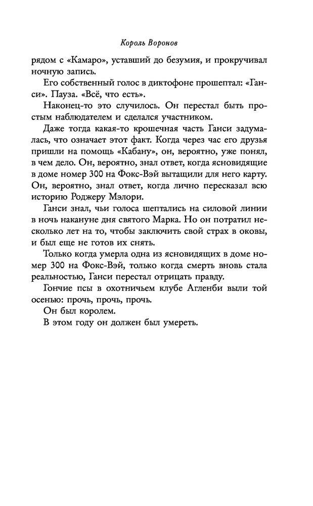 Король вороновВ данный момент этот товар отсутствует в продаже. Возможно, у нас найдется аналогичный или похожий товар здесь. Серия: Young Adult. Бестселлер Мэгги Стивотер. Воронята «Чей-то голос шепнул ему в ухо: „Ты будешь жить благодаря Глендауэру. Кто-то на силовой линии сейчас умирает, хотя не должен. Поэтому ты будешь жить, хотя не должен“. Он умер — но не сумел остаться мертвым. Он был королем». |