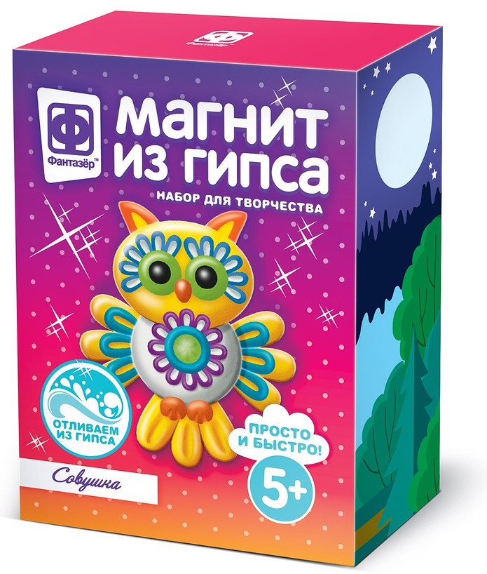 Фантазер Набор для изготовления магнита из гипса «Совушка»В данный момент этот товар отсутствует в продаже. Возможно, у нас найдется аналогичный или похожий товар здесь. Серия: Ваятель Набор для создания объемного барельефа поможет ребенку своими руками сделать симпатичный гипсовый магнит с двумя кроликами. Барельеф делается путем заливки гипса в формочку и последующего раскрашивания готовой поделки красками или фломастерами. Готовый магнит можно разместить на любой металлической поверхности. Кроме того, он станет отличным подарком для родных и друзей малыша. Набор развивает мелкую моторику и цветовое воображение. |