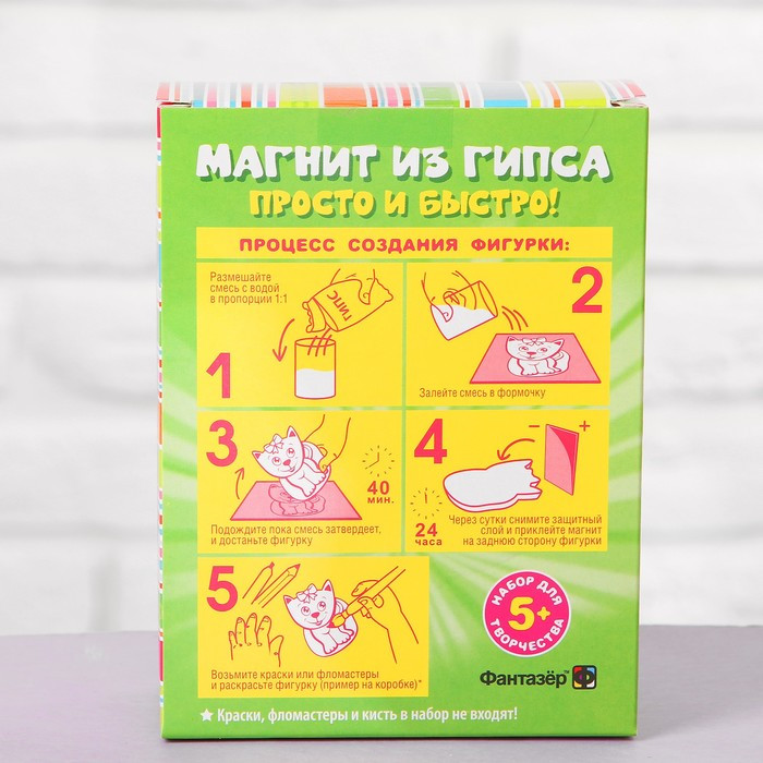 Фантазер Набор для изготовления магнита из гипса «Любимчик»В данный момент этот товар отсутствует в продаже. Возможно, у нас найдется аналогичный или похожий товар здесь. Серия: Ваятель Набор для создания объемного барельефа поможет ребенку своими руками сделать симпатичный гипсовый магнит в виде забавной зверюшки. Барельеф делается путем заливки гипса в формочку и последующего раскрашивания готовой поделки красками или фломастерами. Готовый магнит можно разместить на любой металлической поверхности. Кроме того, он станет отличным подарком для родных и друзей малыша. Набор развивает мелкую моторику и цветовое воображение. |