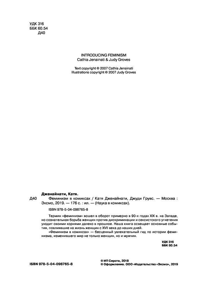 Серия: Наука в комиксах Термин «феминизм» вошел в оборот примерно в 90-х годах 19 в. на Западе, но сознательная борьба женщин против дискриминации и сексистского угнетения уходит своими корнями далеко назад. Наша книга освещает основные события, повлиявшие на жизнь женщин с 17-го века до наших дней. «Феминизм в комиксах» — бесценный увлекательный гид по истории феминизма, изменившего мир не только женщин, но и мужчин. |