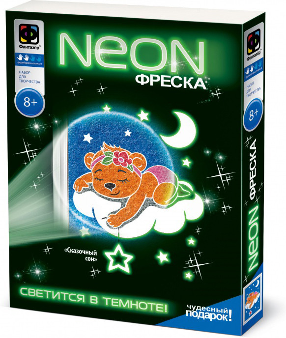 Простая техника изготовления, интересный сюжет и необычные материалы сделают творческий процесс веселым и увлекательным. Малыш будет усердно трудиться над своим первым шедевром, попутно овладевая полезными навыками. А ночью с его картиной начнут происходить необыкновенные вещи! Приятно делать чудеса своими руками! Уникальная технология с использованием неонового порошка.