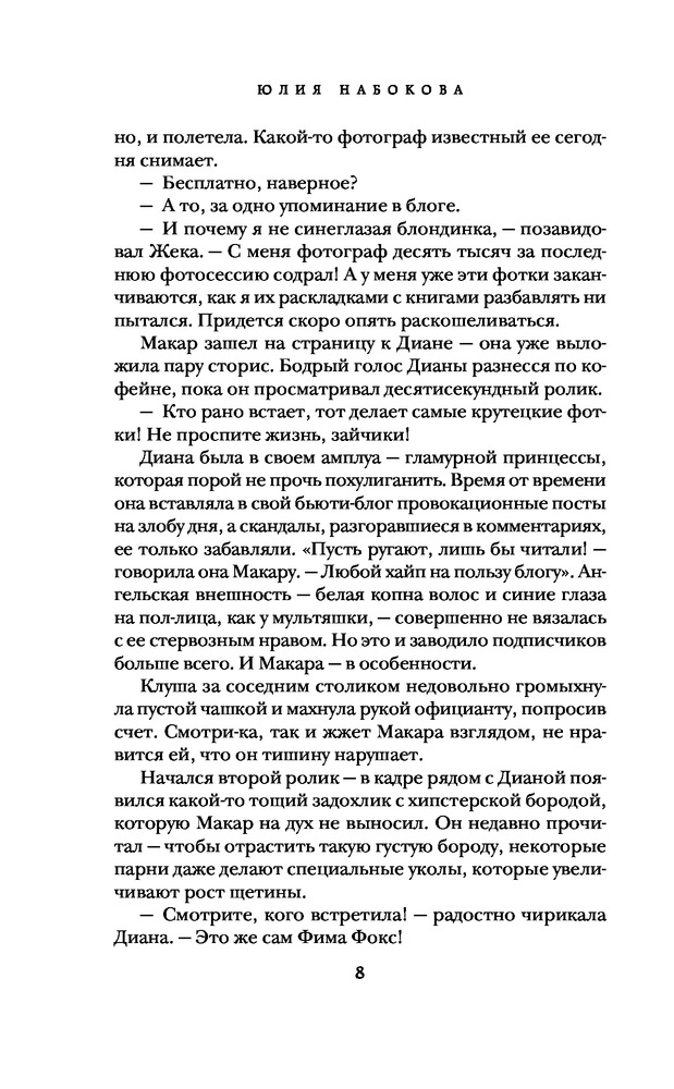 Книга читается легко и быстро. Сюжет захватывает буквально "с первых страниц". Не типичные герои, для типа таких книг. Интересно и одновременно странно развиваются любовные линии, а так же, присутствуют внезапные сюжетные повороты. Само повествование от лиц всех героев приводит в восторг. Из недостатков могу выделить следующее: что язык достаточно прост и понятен(при этом данный фактор можно считать и плюсом). А так же хотелось бы, продолжение последнего сюжетного поворота(На страницы 2...). Но в целом если считать по 10-ти бальной шкале, эта книга получит оценку 8,5/10