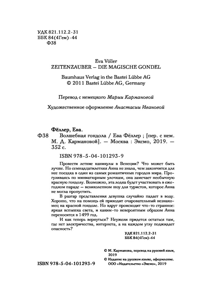 Волшебная гондолаВ данный момент этот товар отсутствует в продаже. Возможно, у нас найдется аналогичный или похожий товар здесь. Серия: Young Adult. Воображариум. Магия времен Провести летние каникулы в Венеции? Что может быть лучше. Но семнадцатилетняя Анна не знала, чем закончится для нее поездка в один из самых романтичных городов мира. Прогуливаясь по миниатюрным улочкам, она замечает необычную красную гондолу. Возможно, эта лодка будет участвовать в ежегодном параде — великолепном шоу для туристов, которое Анна не могла пропустить. В разгар представления девушка случайно падает в воду. Хорошо, что на помощь ей приходит очаровательный незнакомец на красной гондоле. Но вдруг происходит что-то странное: яркая вспышка света, и каким-то невероятным образом Анна переносится в 1499 год. И как теперь вернуться? Неужели придется остаться там, где нет электричества, интернета, а на каждом углу поджидает опасность? |