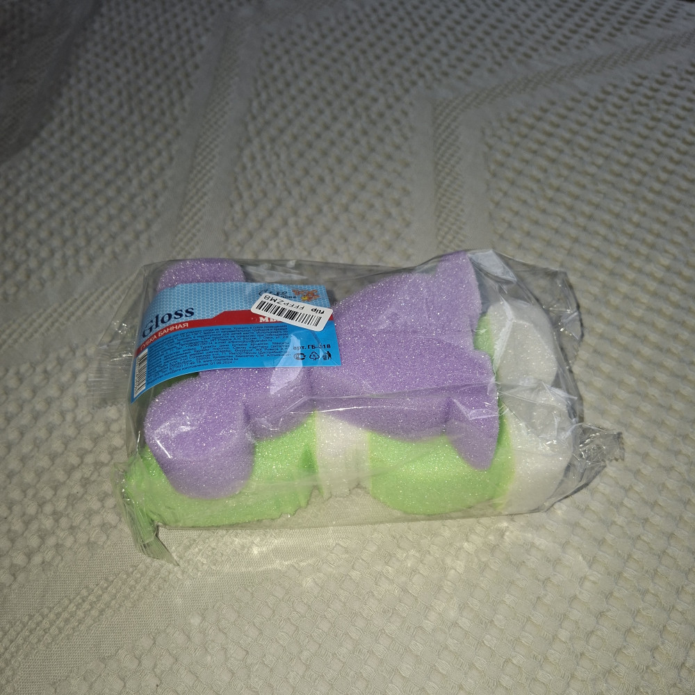 Губка хорошая, за такую цену просто шик, мягкая и отлично пенится, подходит для детской нежной кожи. Пришла в упаковке. Детям очень нравится.