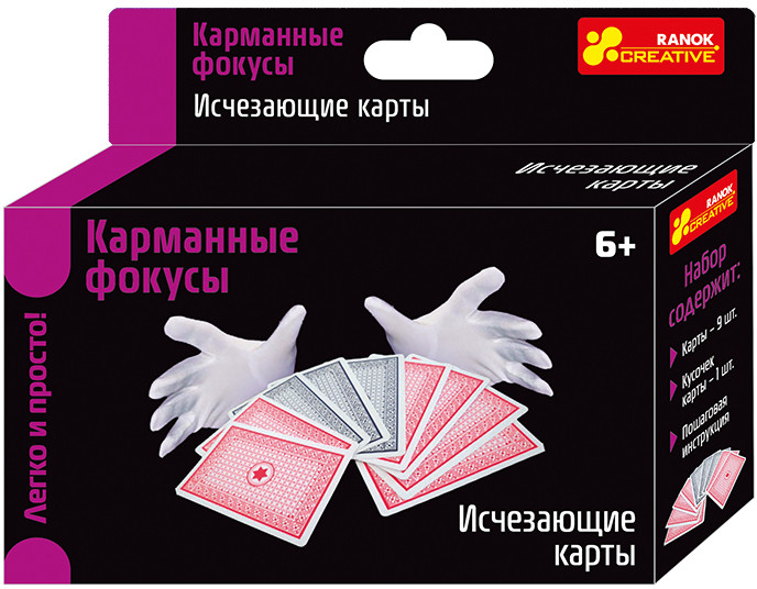 Ranok Creative Набор для фокусов «Исчезающие карты»В данный момент этот товар отсутствует в продаже. Возможно, у нас найдется аналогичный или похожий товар здесь. Серия: Фокусы Карманные фокусы — это наборы с удивительно легкими и зрелищными фокусами! Благодаря пошаговой инструкции с картинками начинающий маг быстро научится всем премудростям магии и начнет вас удивлять. Наборы очень легкие и удобные. Их можно брать с собой в дорогу или в гости, где ребенок сможет продемонстрировать ловкость рук и чудеса магии. |