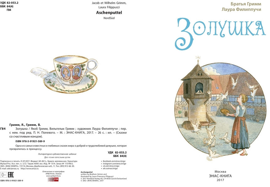 «Золушка» — одна из самых известных и любимых в мире сказок о доброй и трудолюбивой девушке, которая превратилась в принцессу. Существует немало версий этого популярнейшего сюжета, в том числе, и авторских. В новом издании использован вариант сказки, рассказанный братьями Гримм. Украшают книгу волшебные иллюстрации итальянской художницы Лауры Филиппучи.