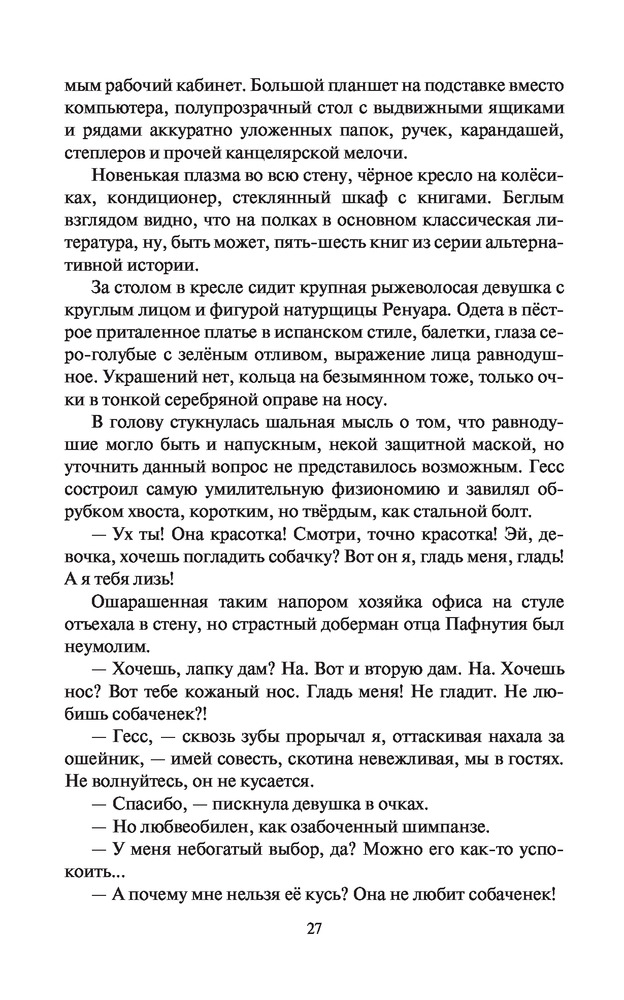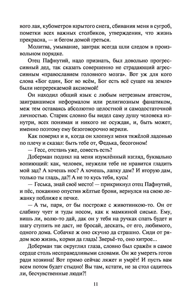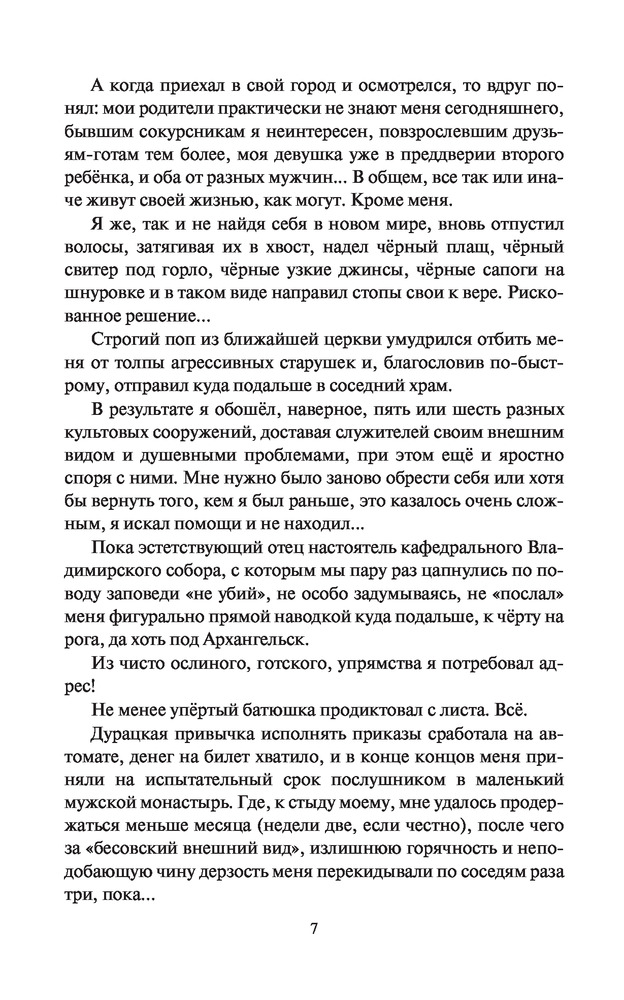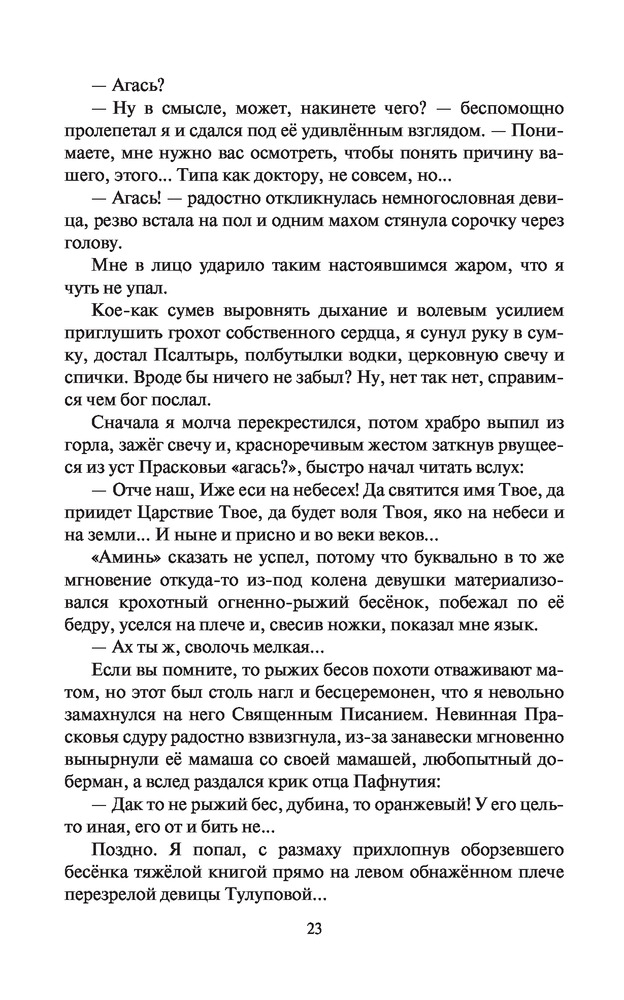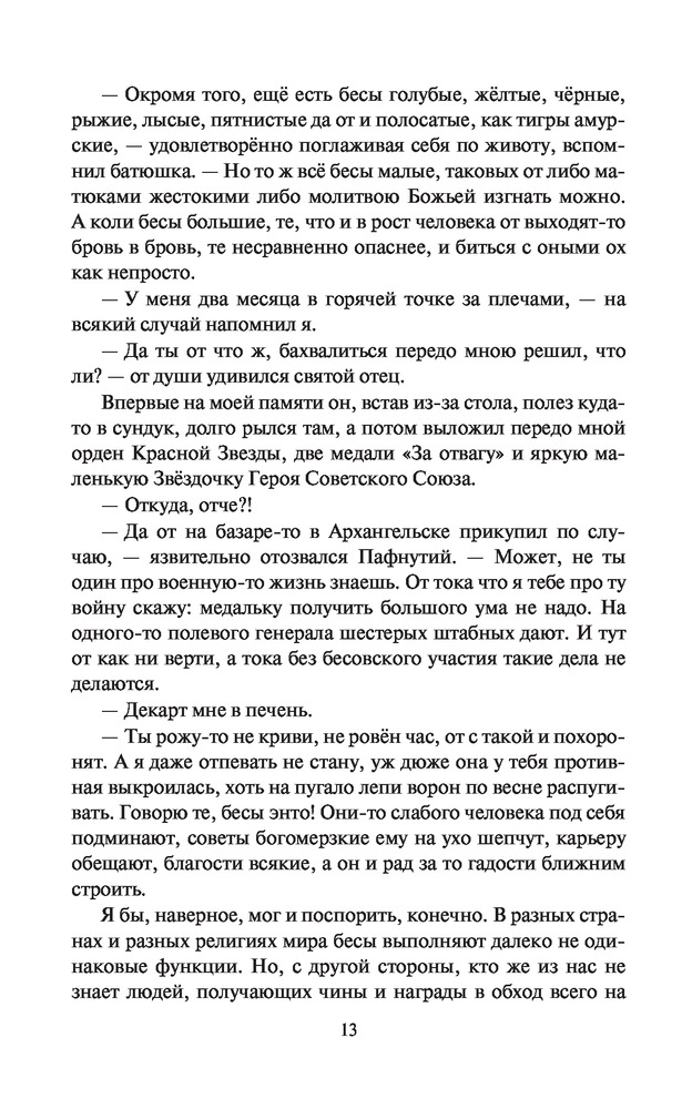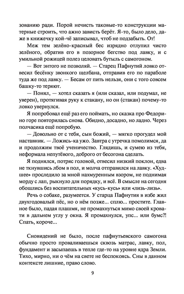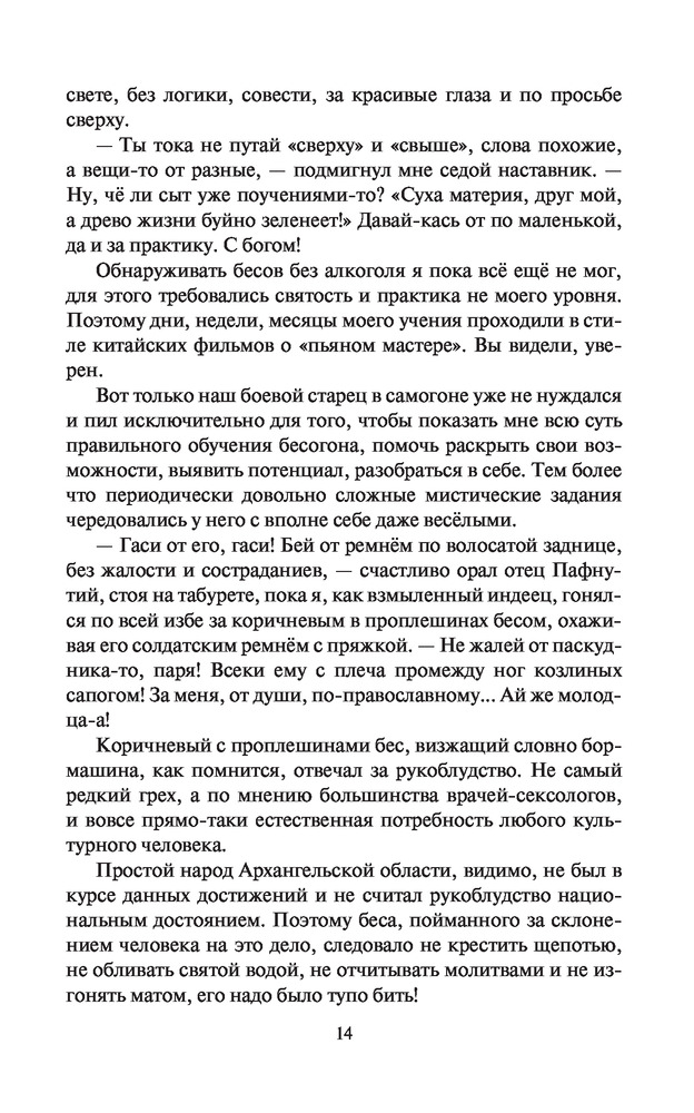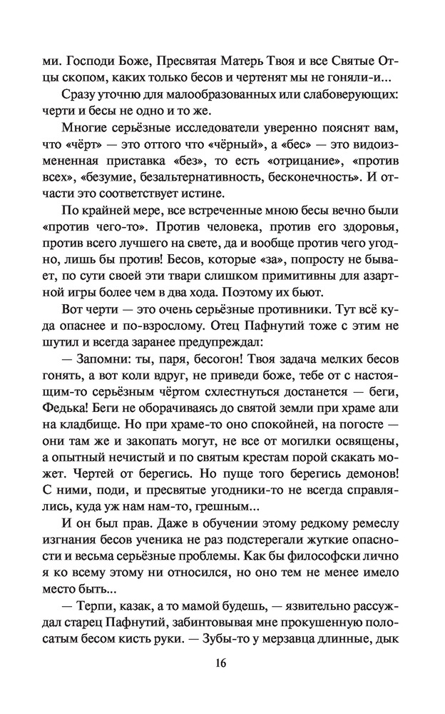 В данный момент этот товар отсутствует в продаже. Возможно, у нас найдется аналогичный или похожий товар здесь. Серия: Фантастический боевик Если в душе ты — гот, по образованию — философ, по воинской специальности — снайпер и до сих пор ищешь себя, бросай всё, езжай на русский Север! В заснеженном селе под Архангельском найди могучего отца Пафнутия, и если сумеешь устоять на ногах, так быть тебе в тайном Ордене бесогонов...Это значит: крест на шею, молитвенник в руки, фляжку святой воды за пазуху, револьвер с серебряными пулями в карман — и вперёд, за странным доберманом по кличке Гесс! Честный, верный, болтливый! Система таких любит.