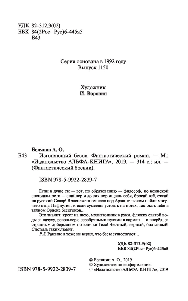 | Изгоняющий бесов (с автографом) Андрей Олегович Белянин