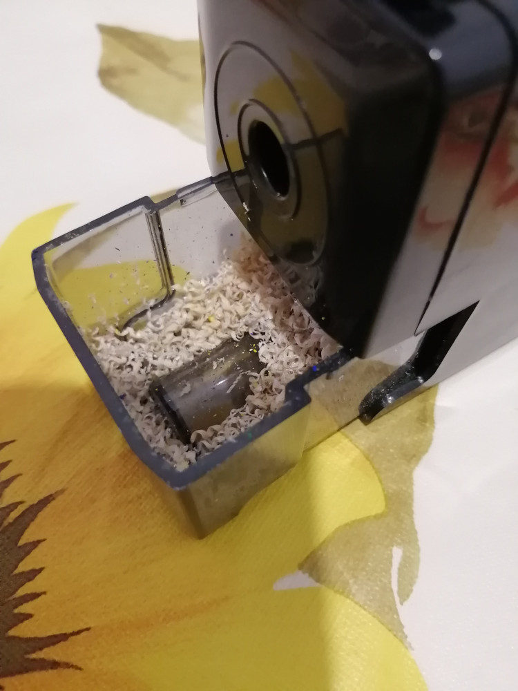 Точилка отлично затачивает. Плюс в точилки, что не нужно постоянно вытаскивать карандаш и смотреть насколько он заточен.Когда она закрывается,значит карандаш заточен.