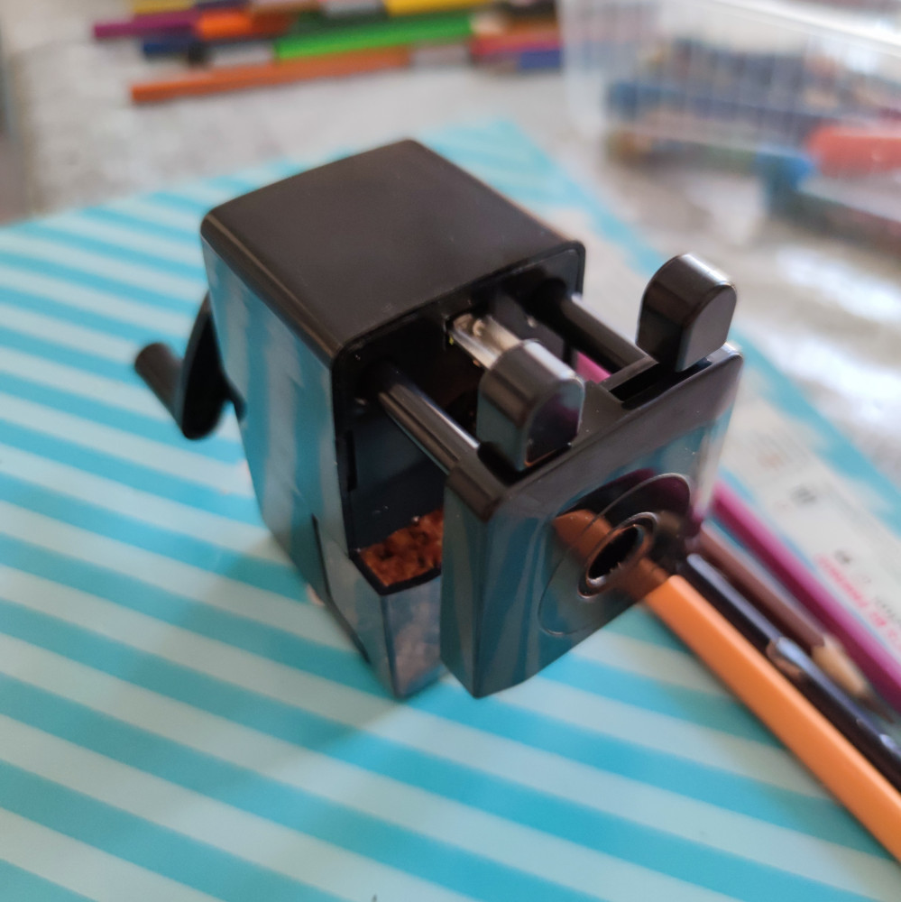 Очень удобная. Легко и быстро затачивает большое количество карандашей. Поначалу трудно разобраться как действует, но механизм оказывается очень простой