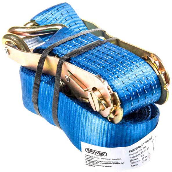 Стяжка груза с храповым механизмом усиленная — стяжка необходима при транспортировке какого либо груза.Специальный способ выполнения швов гарантирует прочность ленты, а эластичный материал способствует плавному движению во время работы. Стяжка обеспечит надежную фиксацию. Конструкция проста, но очень надежна! Стяжка груза имеет храповый усиленный механизм с зубцами, надежно фиксирующий груз. Лента стяжки износостойкая, малорастяжимая и очень прочная. Она не треснет при низких температурах и не боится влаги.