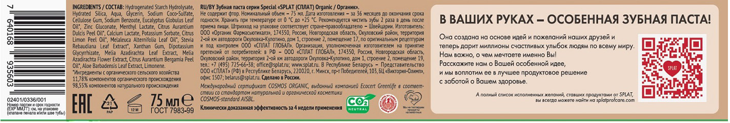 Splat Зубная паста «Organic»