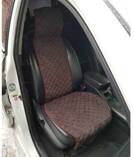 Алькантара или искусственная замша — мягкий и приятный на ощупь материал, отличается высокой устойчивостью и прочностью. Регулировочная вставка с обратной стороны позволяет надежно закрепить накидку и предотвратить ее проскальзывание. Крепится аксессуар при помощи резинок.