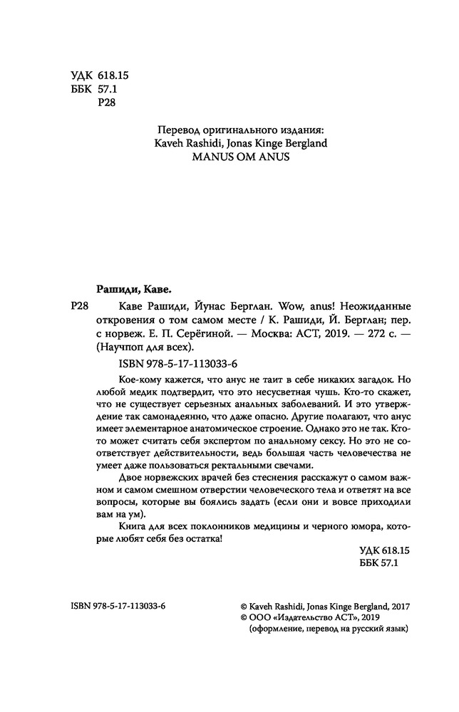 Wow, anus! Неожиданные откровения о том самом местеКавех Рашиди, Йонас Кине Берглан +48