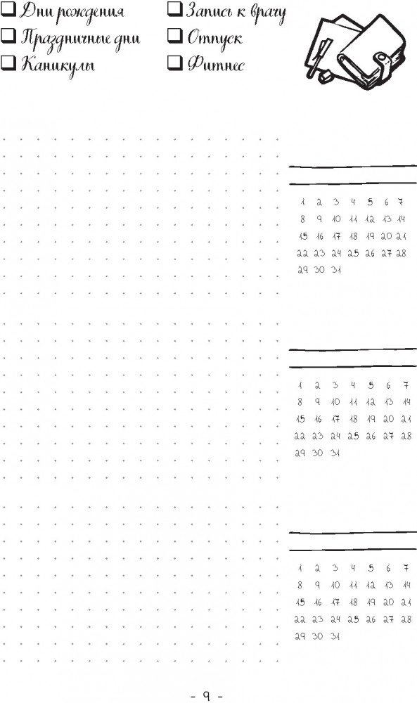💳 Оплатить за товар можно при получении 🇰🇿 Есть бесплатная доставка по Казахстану от 1 дня 🎁 Копите бонусы с каждой покупки Серия: Креативный bullet-ежедневник на весь год В его основе — удобная система планирования bullet-journal, популярная во всем мире. Благодаря ей вы можете организовать свои личные и рабочие дела на год, месяц и день, пользуясь условными обозначениями и символами. Такой подход помогает расставить приоритеты, конкретизировать цели, а также творчески подойти к решению стоящих перед вами задач. |