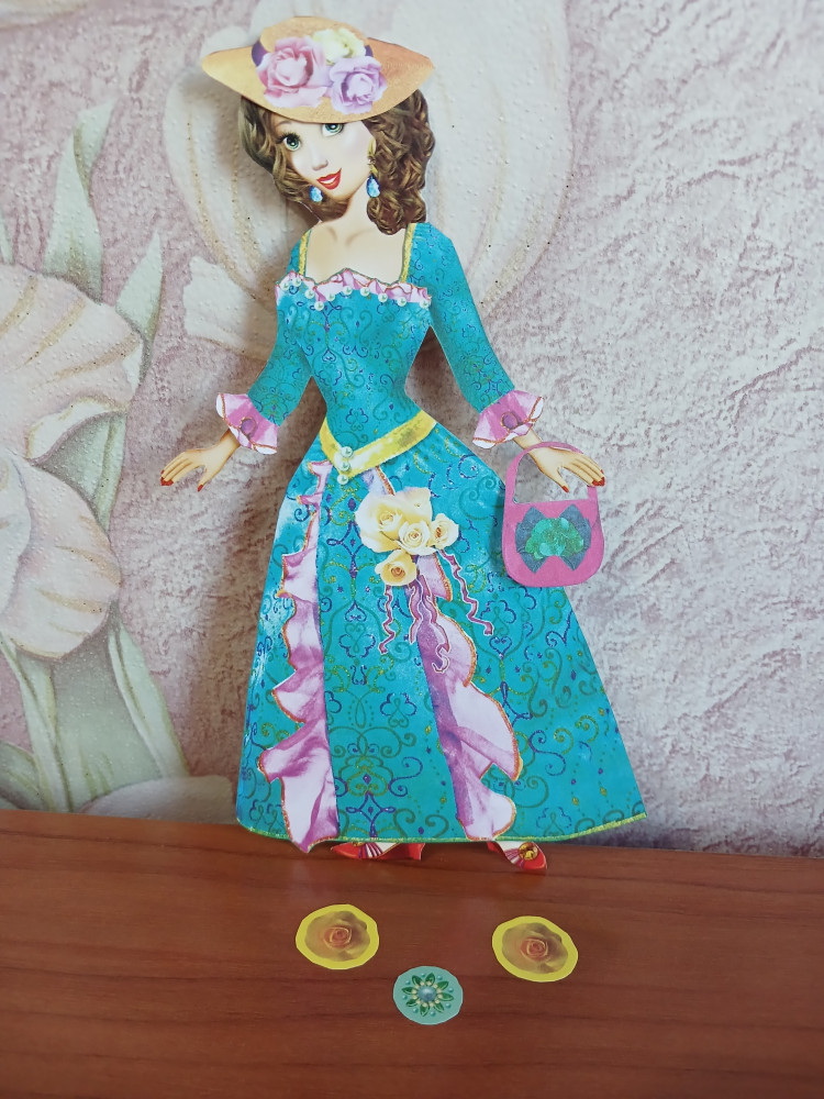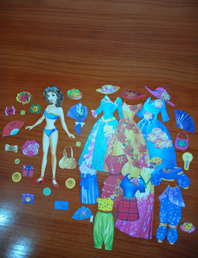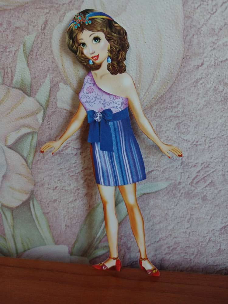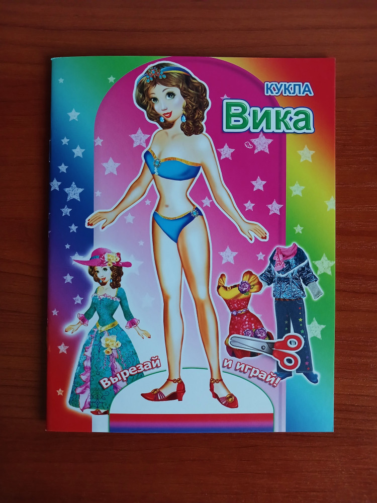 Кукла Вика 🎎✂👗🎀👠👒💍❤ Вот такая вот миниатюрная бумажная куколка есть в моей коллекции. Изначально она была на подставке и с белым контуром, но мне не очень понравилось, и я вырезала и склеила её без этих компонентов, так, на мой взгляд, куколка смотрится естественнее. На станицах с гардеробом присутствовали множество мелких вещиц, немного непонятно нужно ли их вырезать или это просто элемент декора книги-вырезкалки. Кое-что вырезала. Здесь не вся одежда, что на обложке, по большей части совсем другая, но хорошенькая. Красивая куколка, её нужно склеивать с двух сторон, бумага достаточно плотная и наряды довольно яркие. Прекрасно! Издательство: "Леда". Дата выхода: 2017 год.