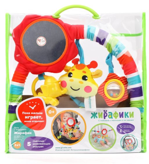 Жирафики Дуга развивающая с 5-ью съемными игрушкамиВ данный момент этот товар отсутствует в продаже. Возможно, у нас найдется аналогичный или похожий товар здесь. Серия: Жирафик Дугу с подвесками «Жирафик» можно разместить над детской кроваткой, коляской или автокреслом при помощи специальных надёжных креплений. Малыш будет уютно засыпать и радостно просыпаться с яркими, привлекающими внимание игрушками. Они поспособствуют развитию у крохи познавательного мышления, эмоционального и визуального восприятия, тактильных ощущений и мелкой моторики рук. |