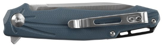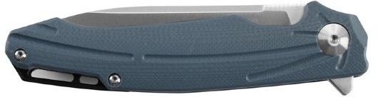 Рукоятка ножа сделана максимально удобной для длительной работы с инструментом. Она получила сдержанность современный дизайн. Накладки для ручки сделаны из композитного стеклопластика G10. В данной модели они могут быть окрашенными в черный, серый или оливково-зеленый цвет. Поверхность рукоятки тире текстурная и дополнительно украшена несколькими желобками. Благодаря этому нож не будет проскальзывать даже в мокрых ладонях. Предусмотрели производители и отверстие для крепления темляка.