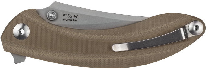 Одним из самых главных качеств складного ножа Ruike P155 является его износостойкость, обусловленная использованием первоклассных материалов и достаточно продуманной конструкцией. Для изготовления лезвия производителем используется сталь марки 14C28N, которая славится отменной стойкостью к динамическим нагрузкам и невосприимчивостью к коррозии. Таким образом, клинок ножа достаточно долго остается острым и не ржавеет от контакта с водой или другими веществами. Открывается нож при помощи двухстороннего шпенька или «плавником». Этот же плавник в открытом виде уберегает пользователя от случайного соскальзывания ладони на клинок и, соответственен, травм. Фиксация лезвия в открытом виде осуществляется замком Liner-lock. Он дополнен оригинальным механизмом под названием Safety-lock и является собственной разработкой компании Ruike. По большому счёту, вспомогательный блокирующий механизм представляет собой небольшую пластину, которая при активации запирает Liner-lock и не даёт ему сдвинуться с места даже при чрезвычайных нагрузках. Округлые формы рукояти позволяют хорошо заполнить ладонь, а цепкие накладки из G10 предотвращают выскальзывание ножа при намокании. На данный момент, модель Ruike P155 доступна с накладками чёрного (P155-B) или песчаного (P155-W) цвета. Ближе к торцевой части рукоятки установлена съемная металлическая клипса, которую можно «перевесить» на другую сторону или вовсе снять.