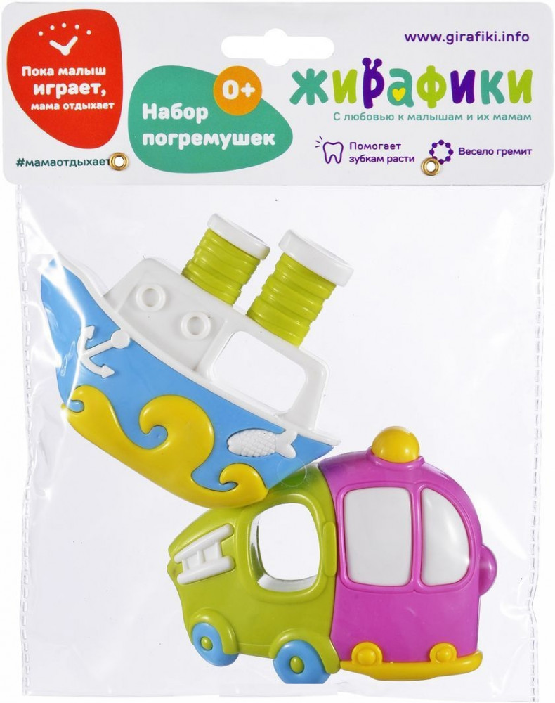 Жирафики Набор погремушек «Кораблик и грузовичок»В данный момент этот товар отсутствует в продаже. Возможно, у нас найдется аналогичный или похожий товар здесь. Эти яркие и забавные погремушки обязательно понравятся малышам! Погремушки развивают слуховое, зрительное восприятие, мелкую моторику, координацию движений и наглядно-действенное мышление. Сначала малыш реагирует на звук погремушки и учится фокусировать на ней взгляд. Позже, когда кроха чуть-чуть подрастет, он научится захватывать погремушку пальчиками, тренируя мелкую моторику. После приобретения этого навыка ребенок переходит к освоению нового действия — он пробует сам греметь погремушкой, совершенствуя координацию движений. У погремушек есть ручки, за которые малышу будет удобно их держать. |