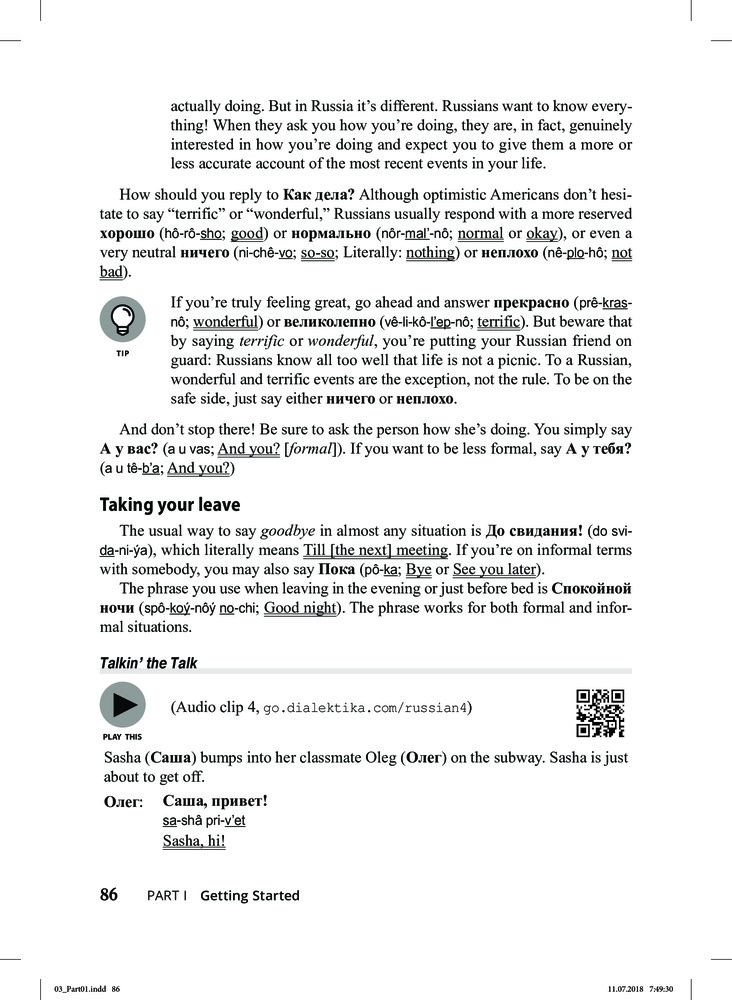 Russian For Foreigners для «чайников»Andrew Kaufman, Serafima Gettys В данный момент этот товар отсутствует в продаже. Возможно, у нас найдется аналогичный или похожий товар здесь. If you’re looking to reach a comfort level in conversational Russian, this hands-on, friendly guide gets you speaking like a native. Here, you’ll find expanded coverage of the necessary grammar, major verb tenses, and conjugations that beginners need to know. Plus, you’ll get a convenient audio course, that includes real-life conversations, handy mini-dictionary, plenty of useful practice opportunities, and more. |