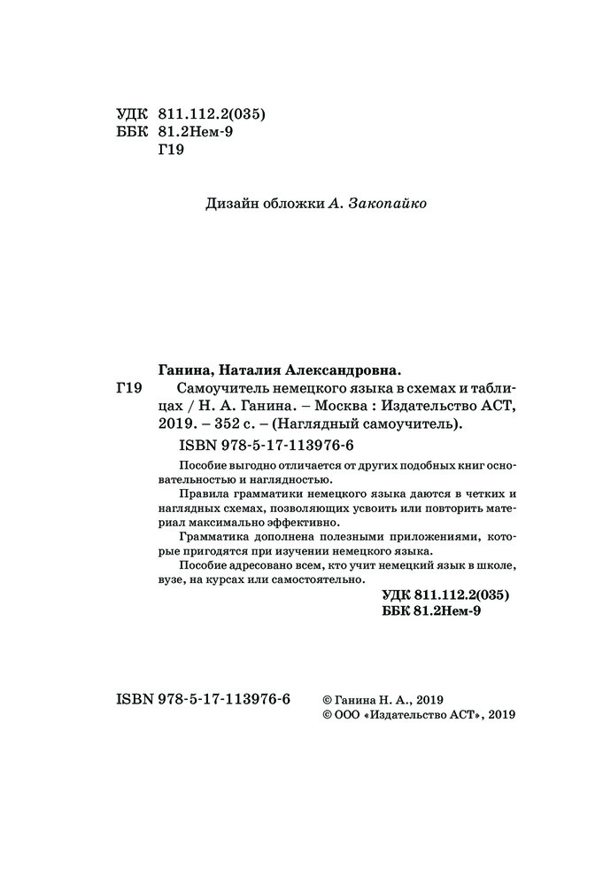 💳 Оплатить за товар можно при получении 🇰🇿 Есть бесплатная доставка по Казахстану от 1 дня 🎁 Копите бонусы с каждой покупки Серия: Наглядный самоучитель Пособие выгодно отличается от других подобных книг основательностью и наглядностью. Правила грамматики немецкого языка даются в четких и наглядных схемах, позволяющих усвоить или повторить материал максимально эффективно. Грамматика дополнена полезными приложениями, которые пригодятся при изучении немецкого языка. Пособие адресовано всем, кто учит немецкий язык в школе, вузе, на курсах или самостоятельно. |