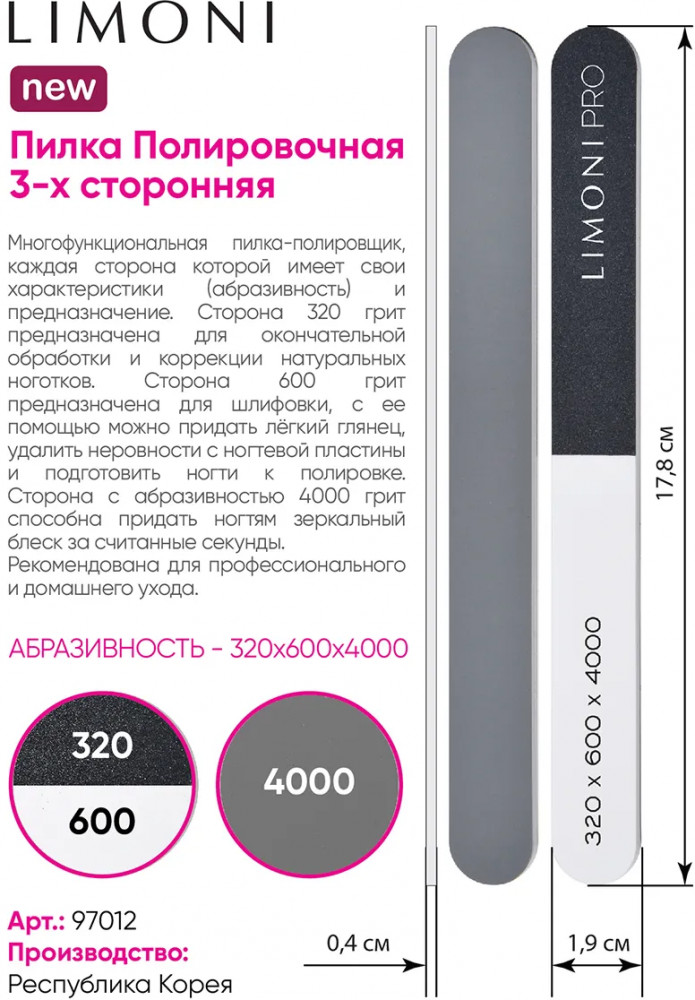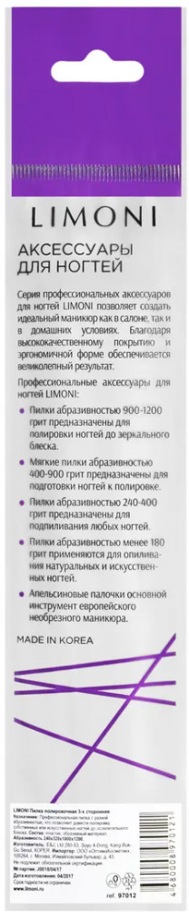 Limoni Пилка для ногтей трехсторонняя-43% +11 низкое качество неэффективность