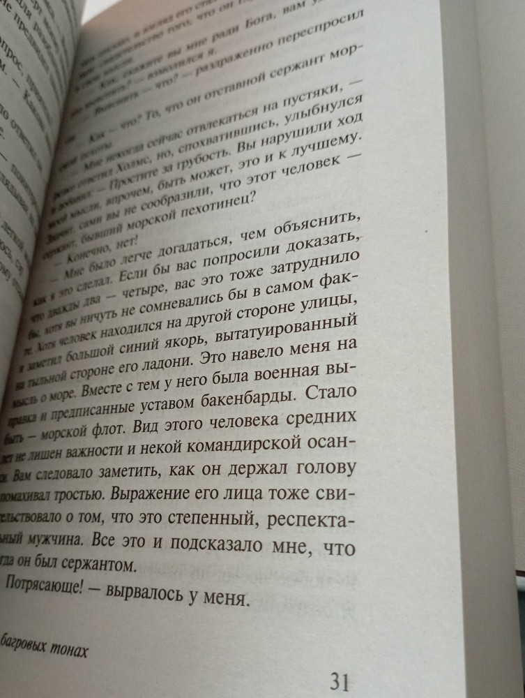 Доставка и качество как всегда на высшем уровне! Сама книга очень увлекательная, а любители детективов знают, что Шерлок является символом этого жанра. Холмс и Уотсон прекрасный тандем. Персонаж Шерлока мне очень полюбился. Артур Конан Дойл создал прекрасный мир, в котором полно преступлений и их невероятных развязок. В общем, я в восторге.