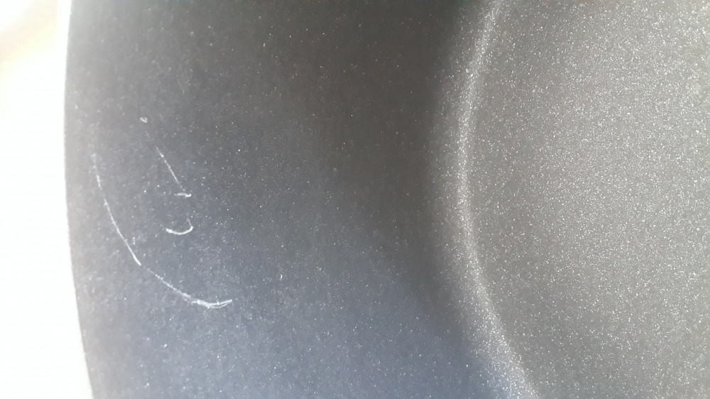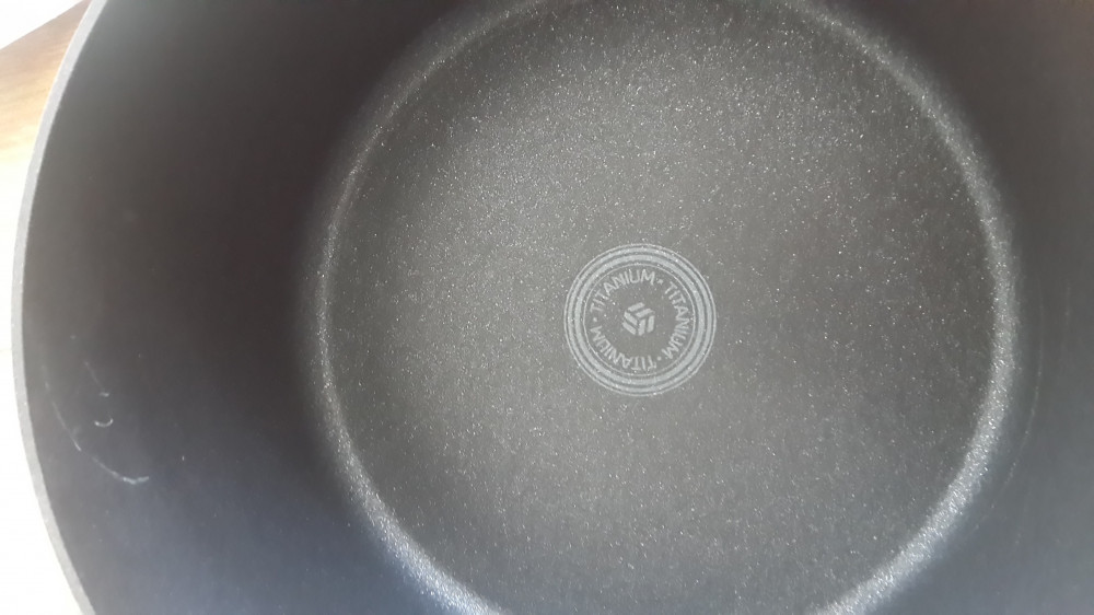 Кастрюля соответствует описанию. Внутри покрытие шершавое. Кастрюля без упаковочной коробки, произведена в Китае. Снимаю 2 звезды из-за царапин внутри.