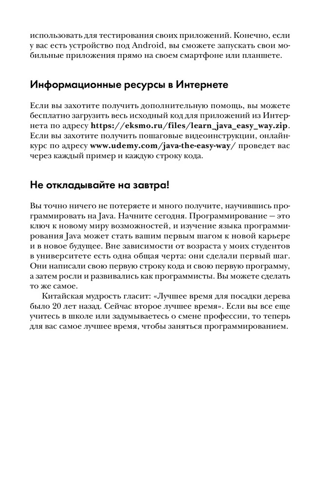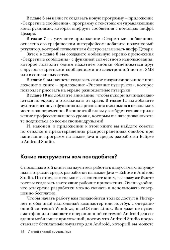 Легкий способ выучить JavaВ данный момент этот товар отсутствует в продаже. Возможно, у нас найдется аналогичный или похожий товар здесь. Серия: Мировой компьютерный бестселлер Java — один из самых популярных и востребованных языков программирования в мире, но и один из самых сложных для изучения, особенно для новичков. Автор этой книги, Брайсон Пэйн, разработал собственный метод обучения, который строится на прохождении материала исключительно на практических примерах. Начните изучать Java, создавая несложные игры для ПК и Android, узнавайте, как работает инструмент JShell, используйте популярные среды разработки Eclipse и Android Studio, учитесь искать и исправлять ошибки в коде и становитесь востребованным программистом с книгой «Легкий способ выучить Java»! |
