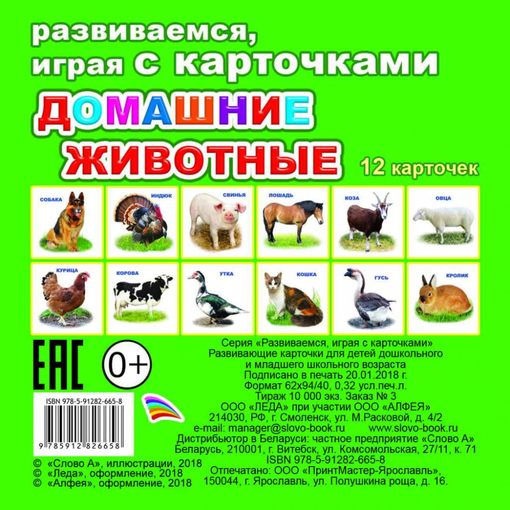 Домашние животные. Обучающие карточкиВ данный момент этот товар отсутствует в продаже. Возможно, у нас найдется аналогичный или похожий товар здесь. Серия: Карточки развивающие для дошкольников Обучающие карточки Алфея «Домашние животные» познакомят вашего ребенка с окружающим миром, помогут развить фантазию и расширить кругозор. На карточках изображены домашние животные. |