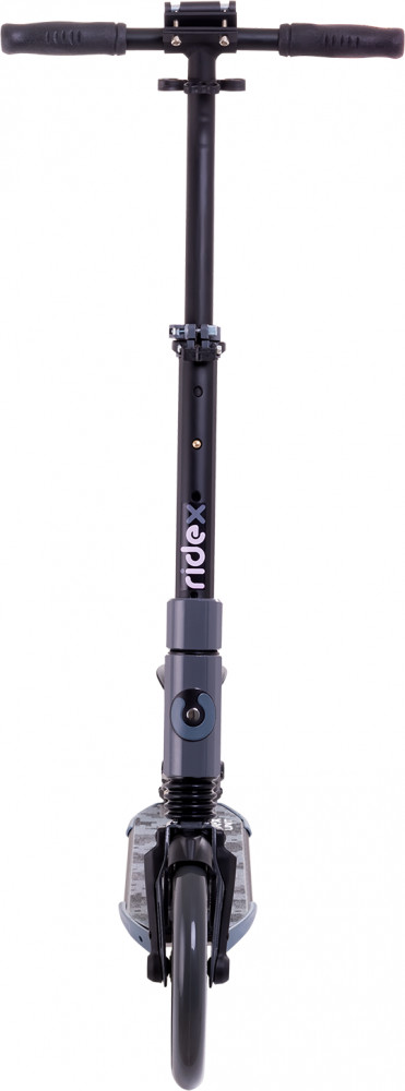 Хороший самокат. Массивный. Лучше для подростка, чем ребенка, в идеале от 12 лет. С нижней фронтальной стороны есть два шурупа, которые ограничивают самокат в разобранном виде, избавляя механизм защелкивания от продавливания при нагрузке. Сразу не разобрался. Думал брак, т.к. самокат щелкал при езде. После понял их применение, и проблема устранилась. 2 амортизатора - хорошее дело, задний настраивается по степени упругости. Удобный руль. Жаль нет подножки в комплекте, иначе было бы совсем шикарно. Самокат пришел собранным, новый в коробке.