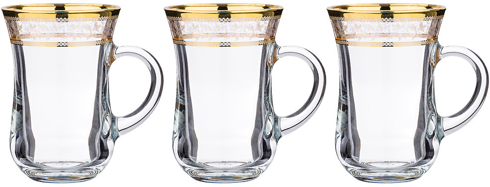 Набор из 3-х кружек изготовлен из высококачественного стекла. Элегантный дизайн придется по вкусу и ценителям классики, и тем, кто предпочитает утонченность и изысканность. Он настроит на позитивный лад и подарит хорошее настроение с самого утра. Чайный набор идеально подойдет для сервировки стола и станет отличным подарком к любому празднику.