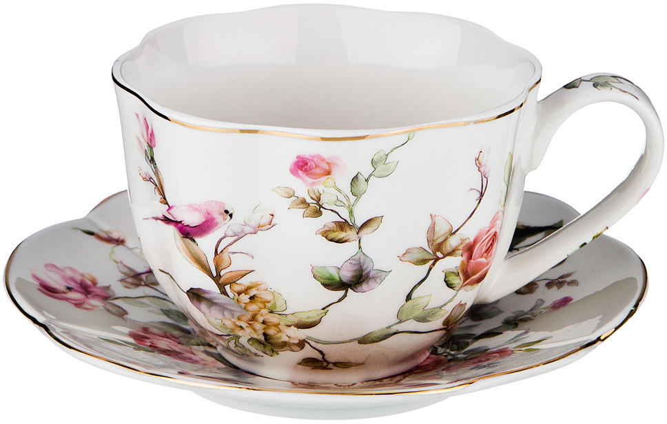 Пара изготовлена из качественного фарфора и выполнена в классическом стиле. Посуда из этого материала позволяет максимально сохранить полезные свойства и вкусовые качества воды. Заварите крепкий, ароматный чай и вы получите заряд бодрости, позитива и энергии на весь день! Классическая форма и креативное оформление изделия позволят наслаждаться любимым напитком в атмосфере еще большей гармонии и эмоциональной наполненности.