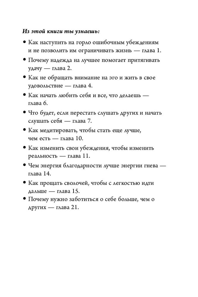 Я просто в восторге от этой книги. Читается легко и очень хорошо промывает мозг. Все важные заключения вынесены в цитаты или шрифтом. И даже если человек не готов кардинально менять свою жизнь, эта книга пойдёт на пользу. Она однозначно оставляет след в сознании и ты хотя бы делаешь вывод, что нужно изменить и над чем работать чтоб стать лучшим для самого себя. Обязательно прочитаю еще раз спустя время. Спасибо flip.kz за качественный товар и быструю доставку.