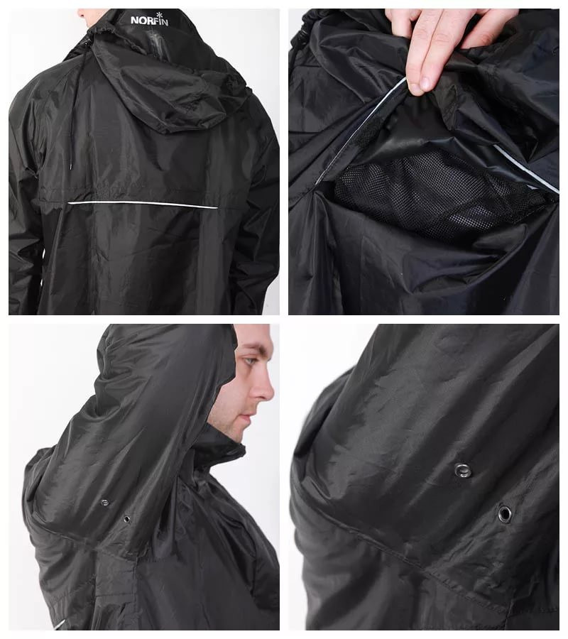Костюм не плохой. Все швы проклеены. Не дышит, но и не промокает. Размер куртки соответствует 50-52 по Европе, штаны - 52-54, при этом талия рассчитана на неполного, а сам крой широковат, длина штанов на рост 190 см. На спине куртки имеется разрез на липах, видимо для проветривания. Капюшон не большой, но с бейсболкой можно натянуть на голову. В целом, как дождевик вполне сносен. Хорошее дополнение к флисовому костюму. Брал размер L (52-54), мой рост 182 см., вес 90 кг.