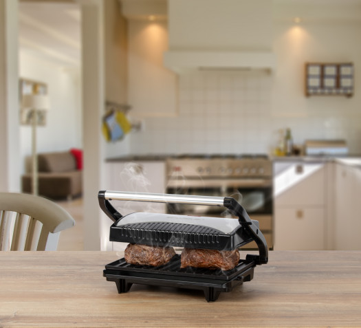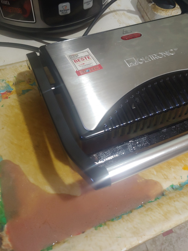 Мощность небольшая, но достаточна, чтобы поджарить котлеты на гамбургер, и сделать себе квадратный омлет. Встроенная регулировка температуры — не даёт пище перегреваться. Один раз передержал кусок хлеба, три превратился в почти сухарики, но не сгорел. Емкости для стока жира нет, приходится выкручиваться. В целом за свою стоимость вещь очень хорошая
